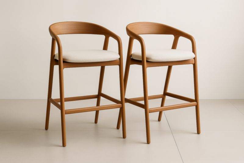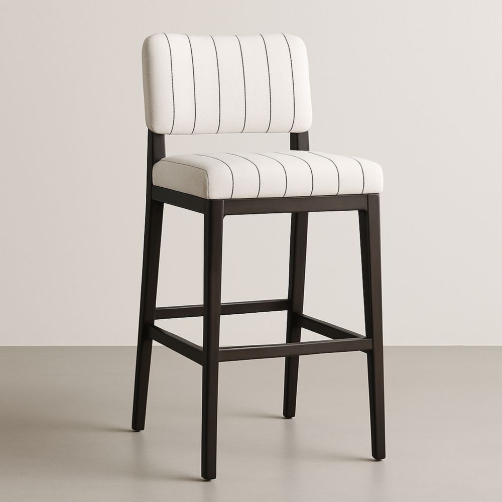 Sgabello da Bar con Struttura in Legno e Rivestimento in Tessuto Bianco con Strisce Nere