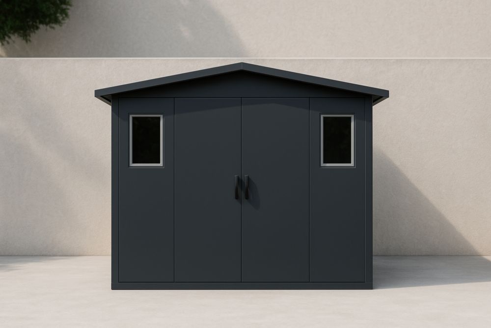Capanno da Giardino in Acciaio Grigio con Doppie Porte e Finestre