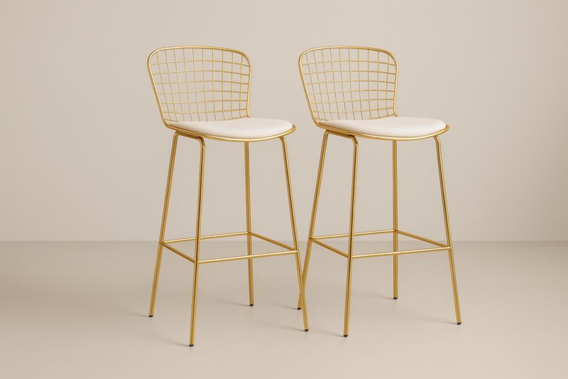 Sgabelli da Bar in Alluminio e Similpelle Dorati e Bianchi