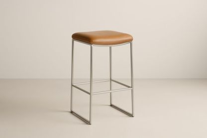 Sgabello da Bar in Acciaio e Pelle Sintetica Marrone, Altezza 75 cm