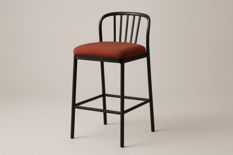 Sgabello da Bar in Acciaio Nero con Seduta in Tessuto Poliestere Rosso, Altezza 102 cm