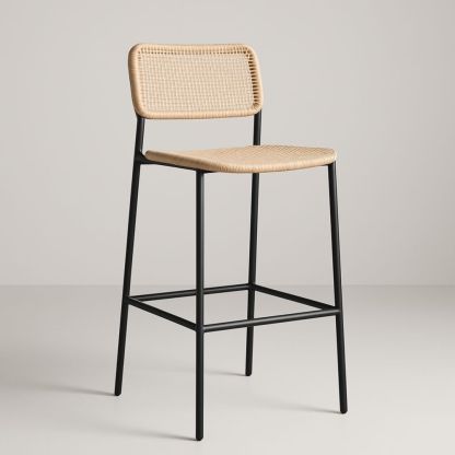 Sgabello da bar in rattan e acciaio nero altezza seduta 75 cm