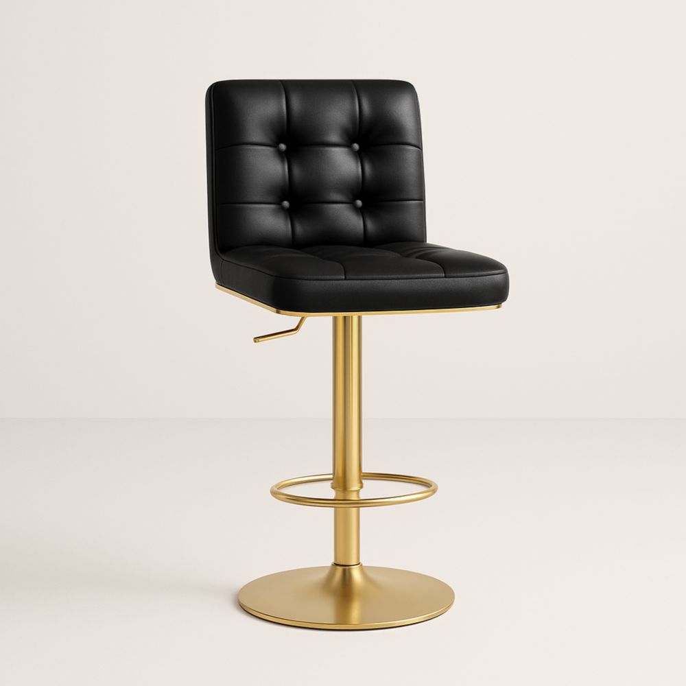 Sgabello da bar nero con base in metallo dorato