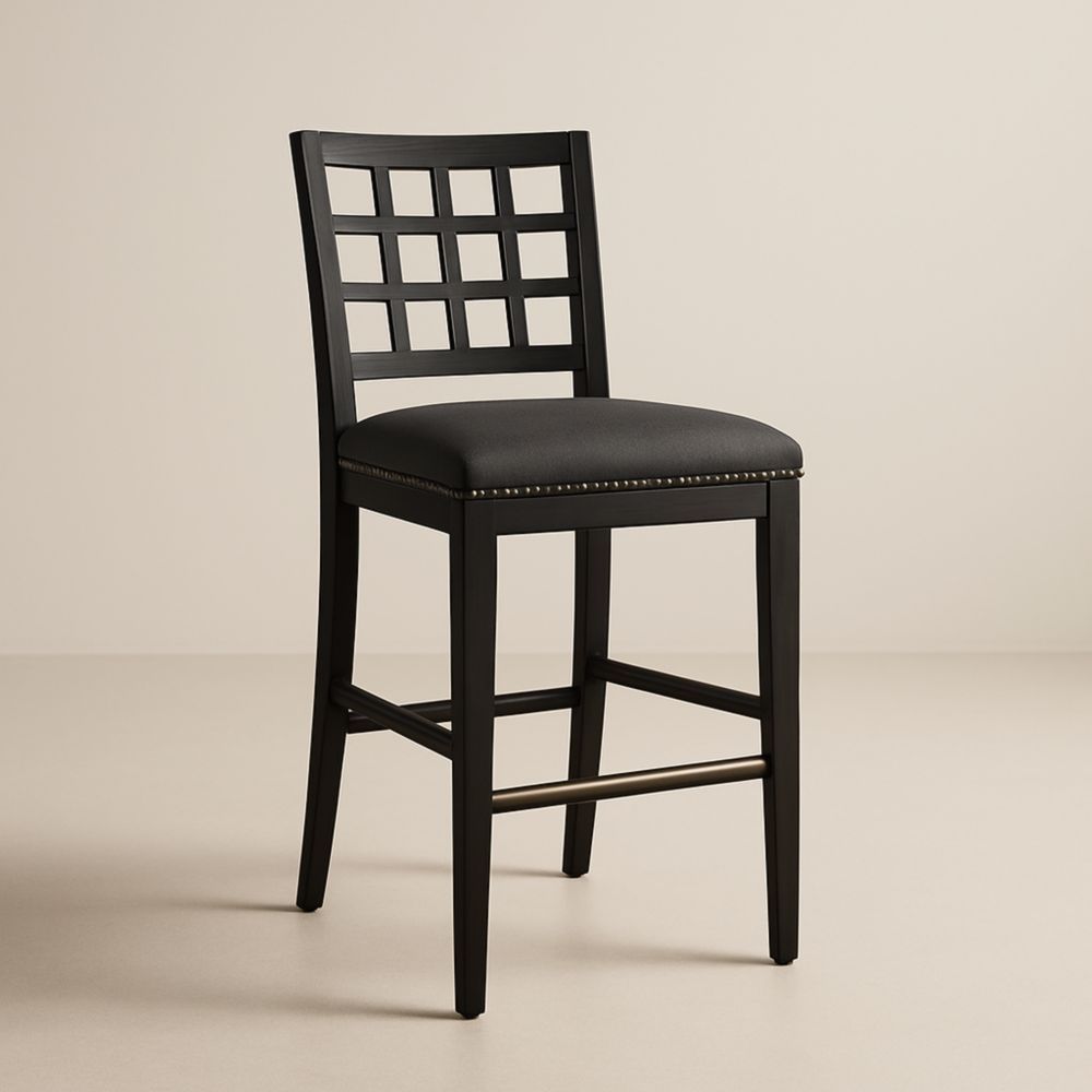 Sgabello da Bar Nero in Legno con Seduta Imbottita