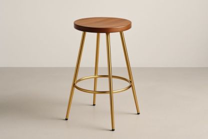 Sgabello da Bar Rotondo in Legno Massello e Acciaio Dorato